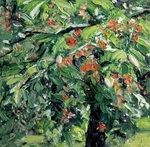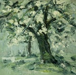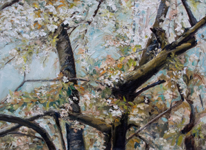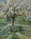 2019Net als vorige jaren kreeg ik in het voorjaar weer zin om bloesem te schilderen. Deze bloeiende fruitboom stond voor de rand van een landgoed. Takken, bloesem, blad, het was een uitbundig gebeuren.