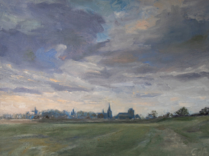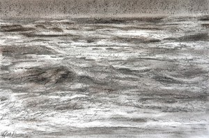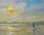2017Deze heb ik binnen geschilderd, een paar dunne lagen over elkaar. Op het laatst toch nog een wat dikkere laag in de wolken en vooral in de zee.