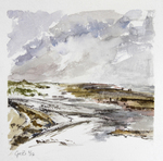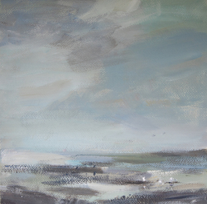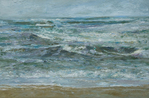 2017Deze heb ik binnen geschilderd, een paar dunne lagen over elkaar. Op het laatst toch nog een wat dikkere laag in de wolken en vooral in de zee.