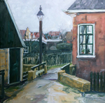 2021Een voorstudie met acryl op papier van het stadsgezicht Wijk bij Duurstede.